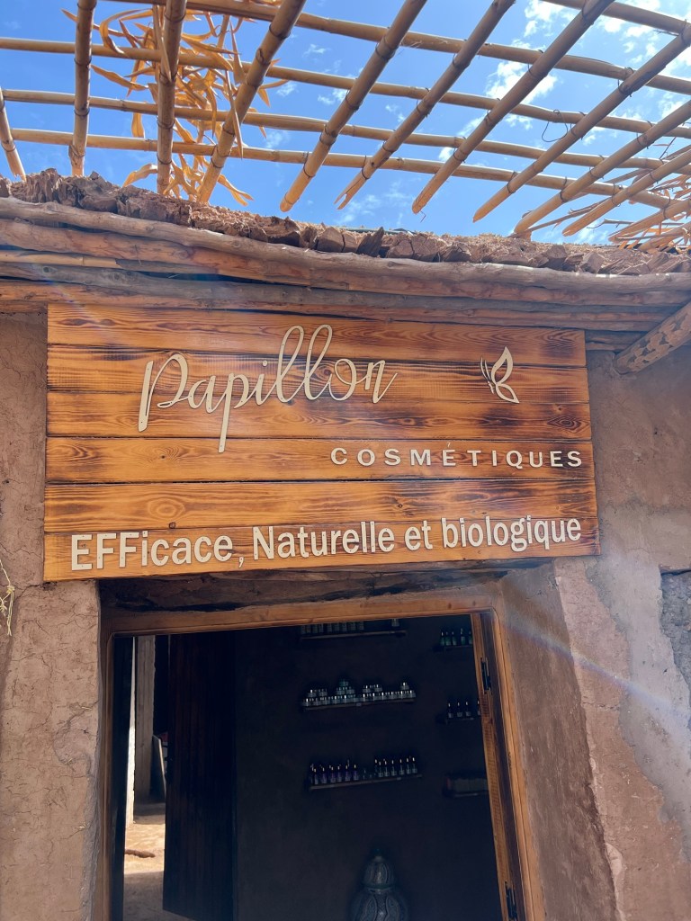 We also visited the Papillon Cosmetics Boutique, a beautiful shop where women work hard to produce authentic Moroccan argan oil. Watching the local women meticulously grind the argan nuts, extract the oil, and produce cosmetic products was a fascinating insight into the effort and skill that goes into each bottle. They offer a fantastic selection of high-quality oils, and I picked up some for myself—it’s a must for anyone interested in natural skincare!