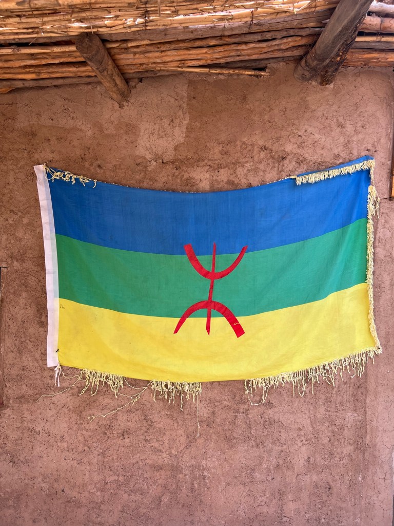 After spending time at the falls, our guide took us through nearby olive groves and a traditional Berber village. The village’s flag – a mix of blue, green, and yellow, represents the Berber people and the diverse landscapes of Morocco: water, mountains, and desert.
